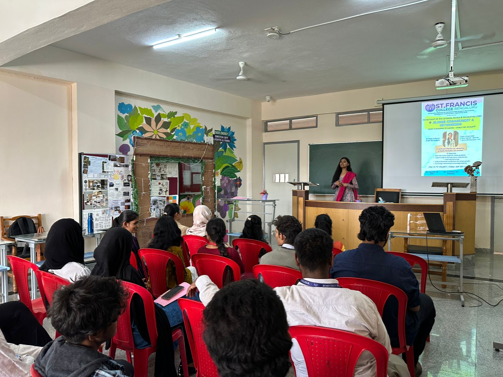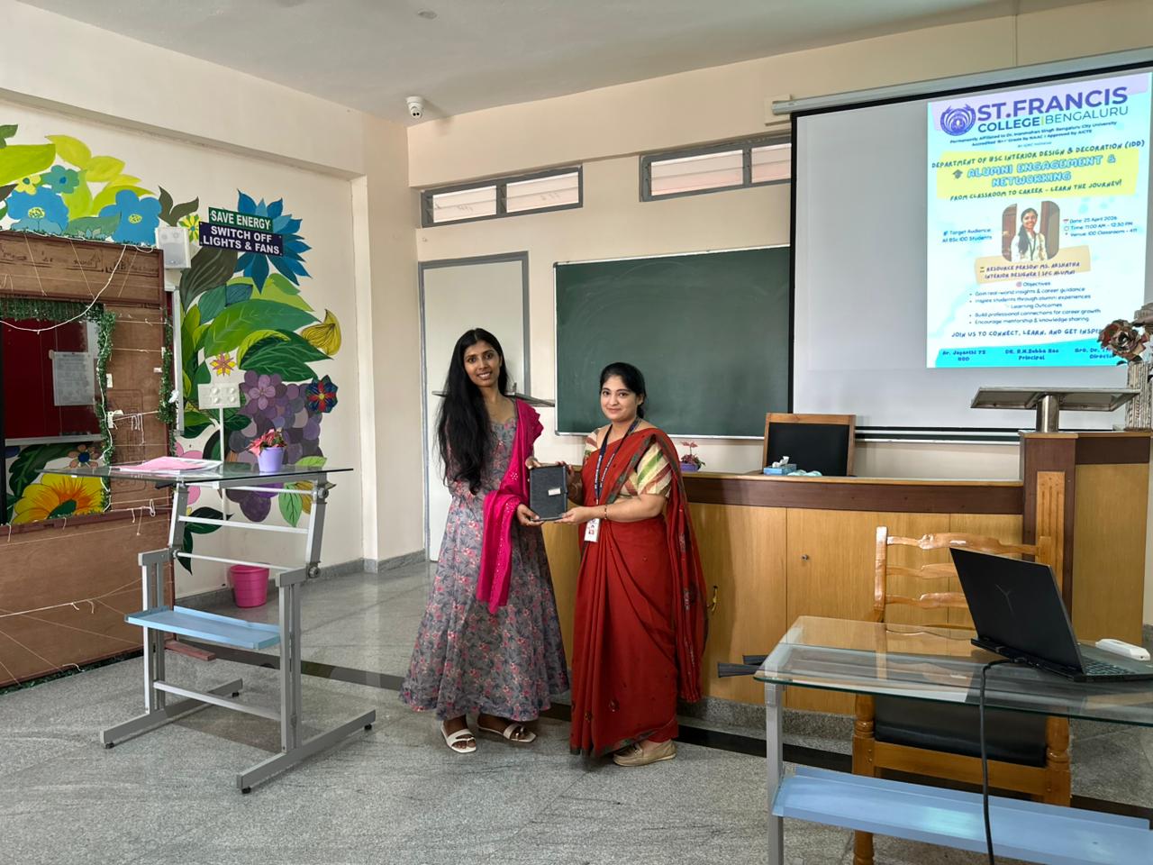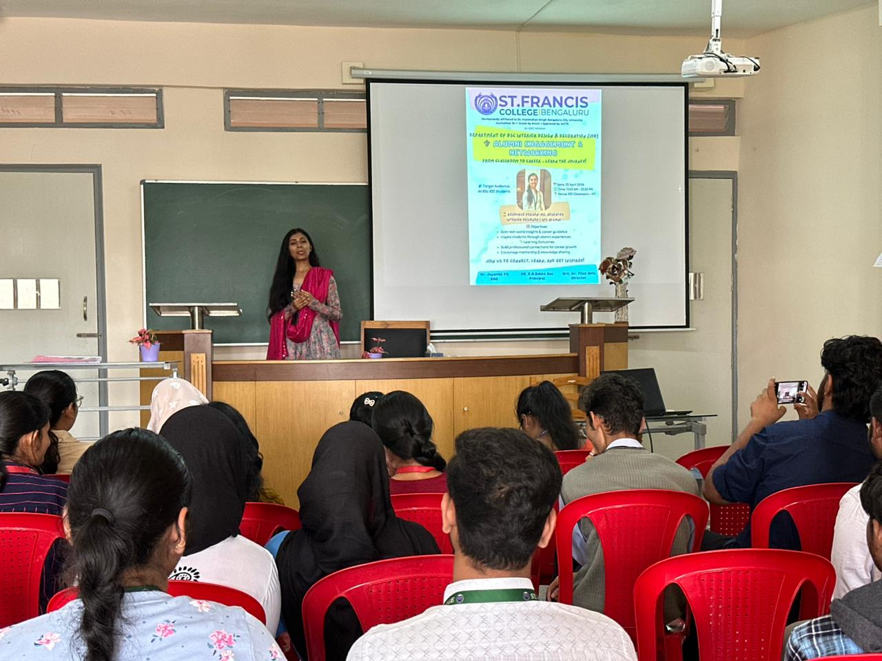 On 25th APRIL 2026, Alumni Engagement & Networking “Alumni Talk by Ms. Akshatha” The Department of B.Sc Interior Design & Decoration (IDD) successfully organized an Alumni Engagement & Networking session titled “Alumni Talk by Ms. Akshatha” on 27th April 2026. The interaction was highly engaging, with students actively participating in the discussion and raising questions related to career opportunities, industry expectations, and skill development. The alumni also emphasized the significance of teamwork, leadership, and effective communication in professional practice. The session was also engaged with alumni to provide real-world insights into the interior design profession.